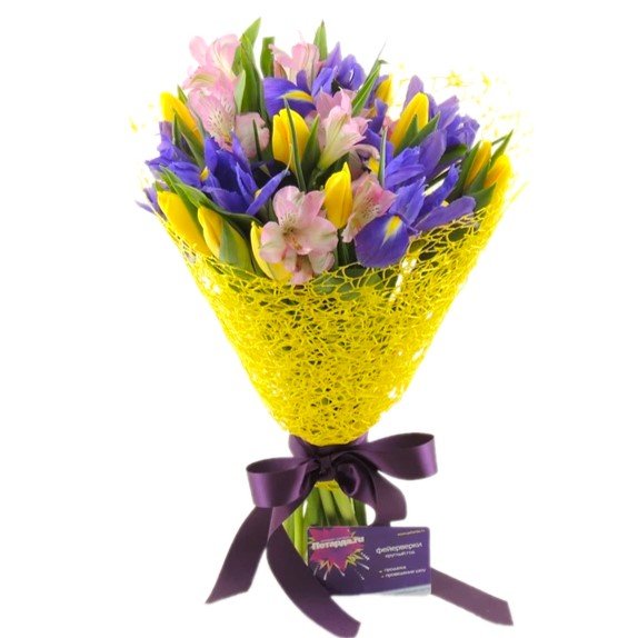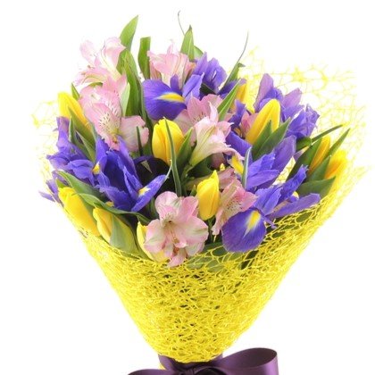 Ирис синий, альстромерия белая: 11 шт.