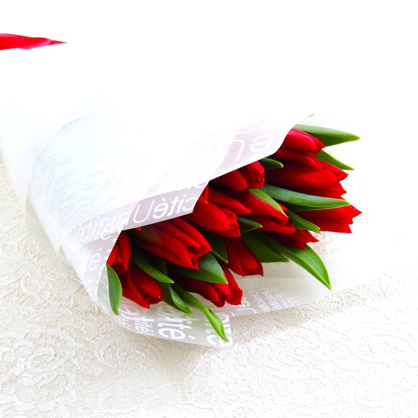 Высота букета: 35 см Состав букета: Тюльпан красный: 11 шт. Упаковка: пленка матовая, лента цветная.