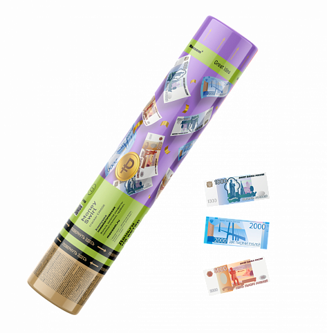 Наполнение: Конфетти-прямоугольники из фольги, «рубли»